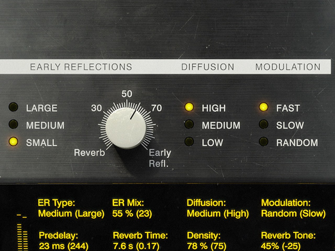周到に設計された41のプリセットがあります。「モダン」と「ヴィンテージ」のセットに分類されています。モダン・セットは今日のおしゃれなリバーブ・サウンドに焦点を絞っており、ヴィンテージ・セットは今でも使いたい旧式のリバーブの特徴を模倣しています。
