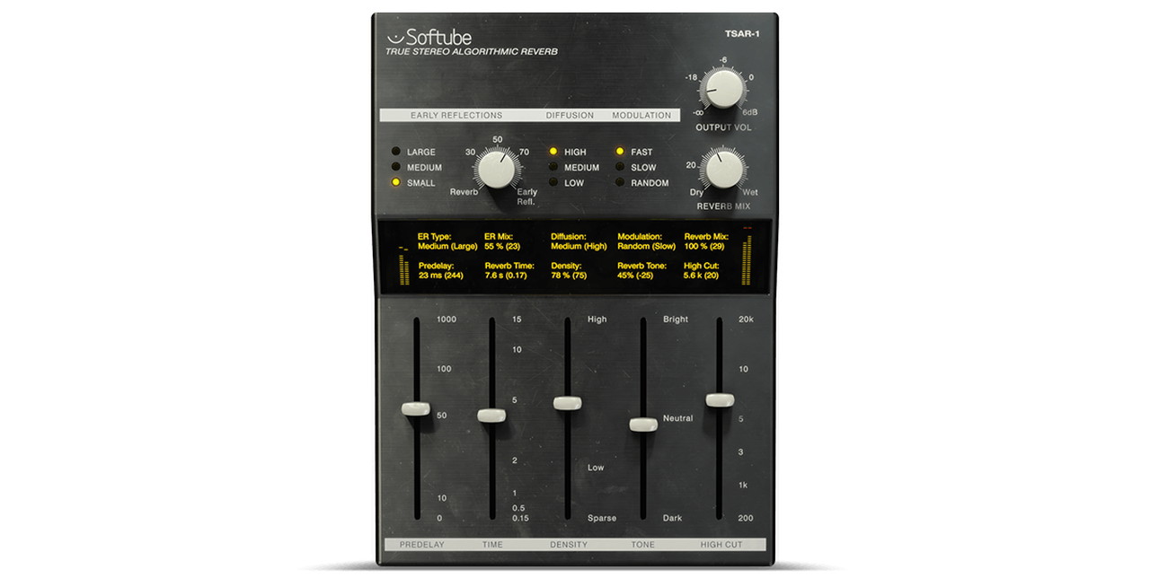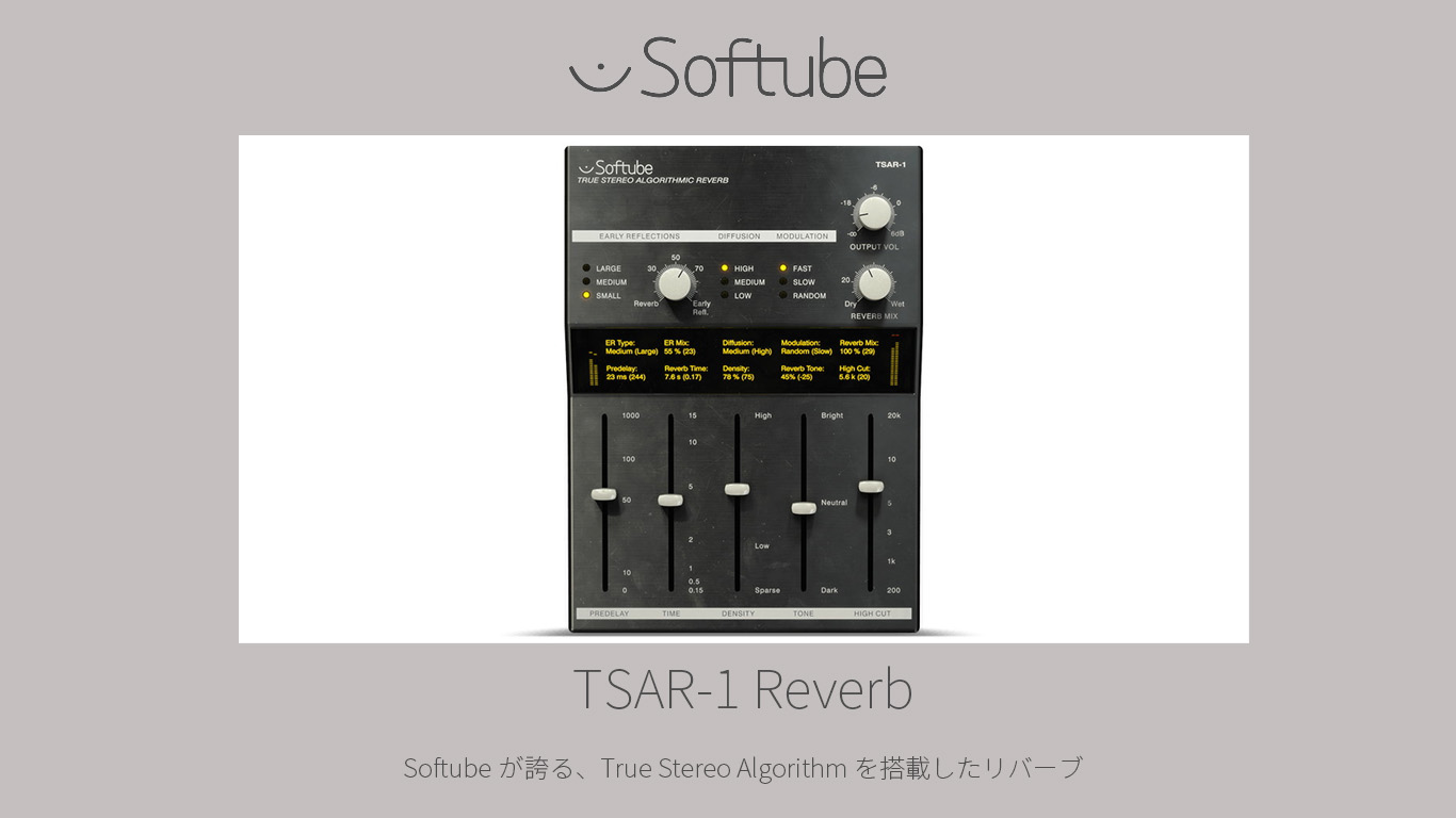 TSAR-1はエミュレーションではなく、パワフルで現代的なSoftubeが誇るTrue Stereo Algorithmを搭載したリバーブです。