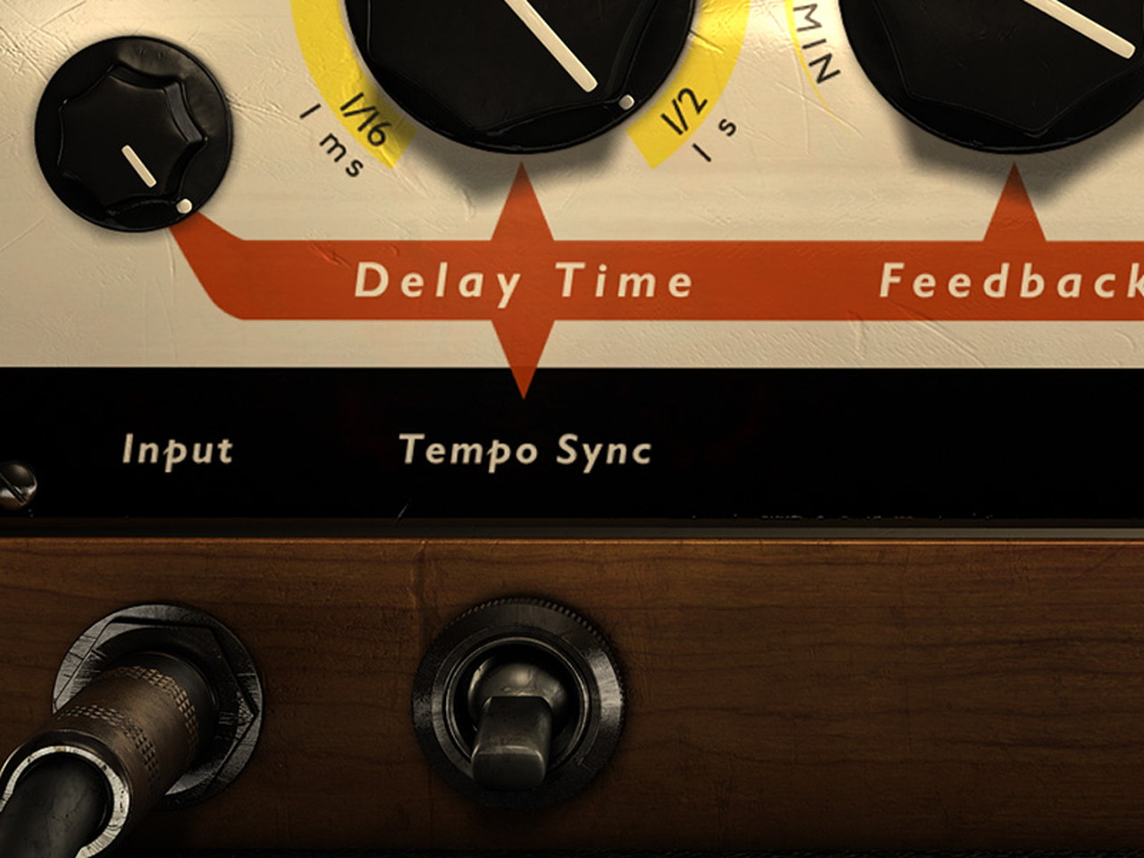 実行中にフィードバックをオンにすれば、本格的なダブ・エコーの熱狂に包まれます。もちろん、曲にディレイを合わせるテンポ同期機能も加えられています。