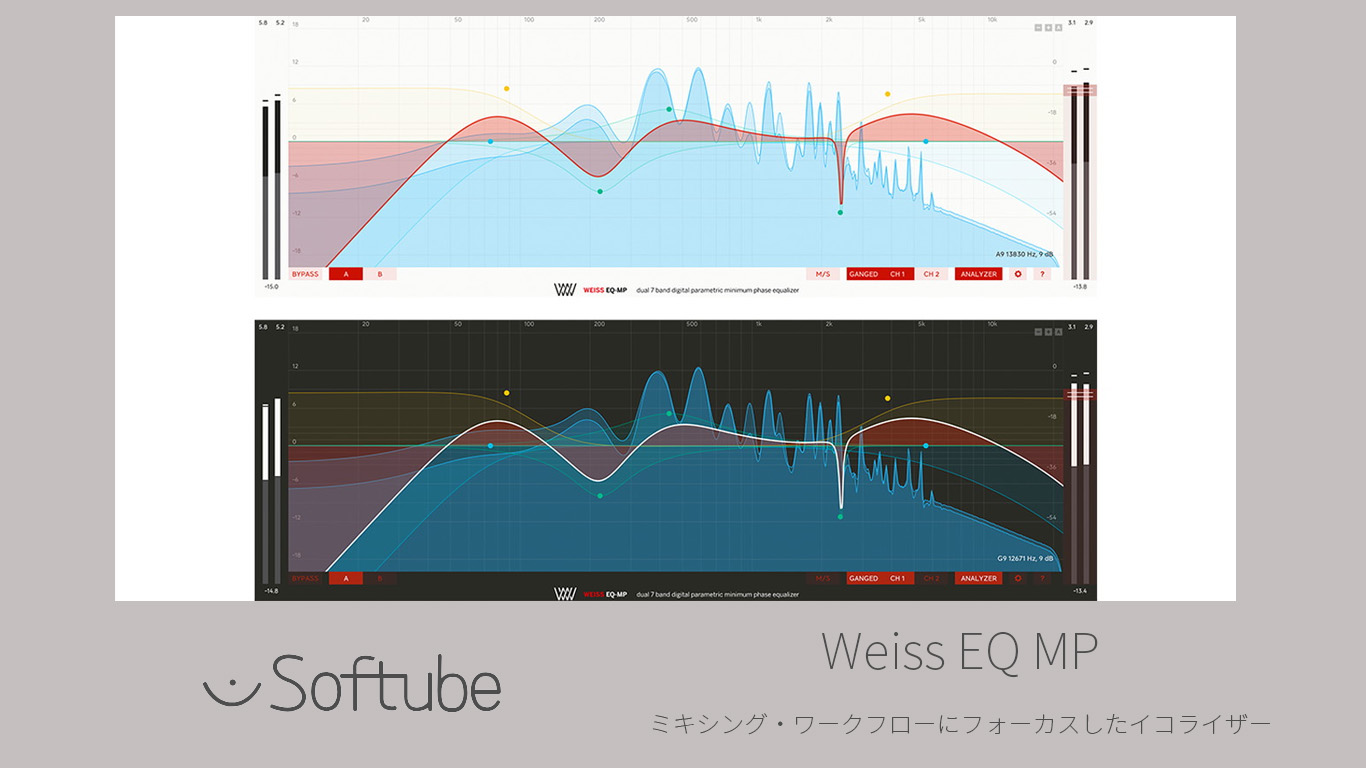 Weiss EQ MPは、世界中のマスタリング・エンジニア標準イコライザーEQ1のミニマム・フェーズ・アルゴリズムに基づき、ミキシング・ワークフローにフォーカスしています。
