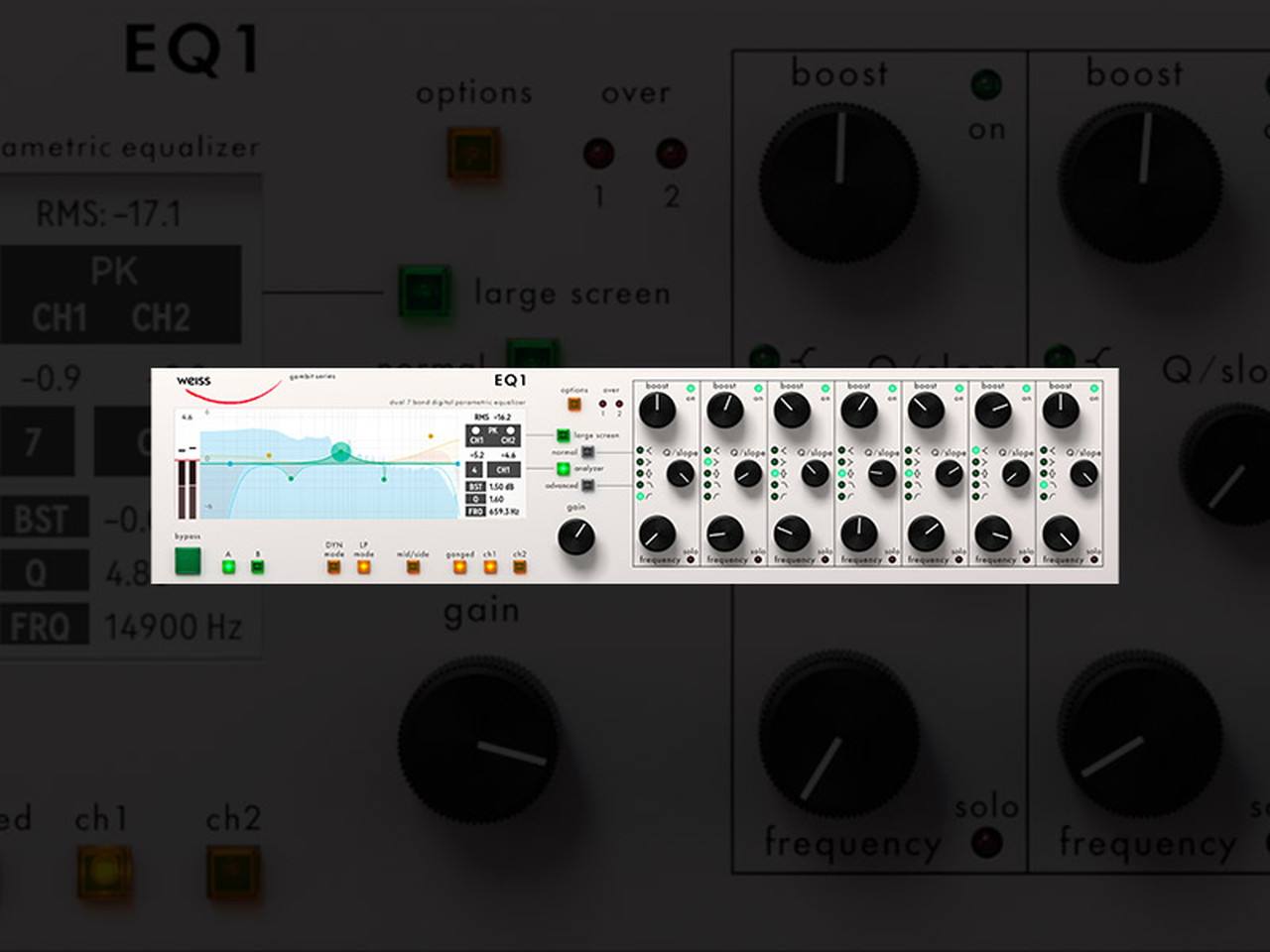 名高いイコライゼーション・クオリティに加え、ミニマム・フェーズEQ、リニア・フェーズEQあるいはダイナミックEQとしても使用できる柔軟性を備えたEQ1は、1996年にリリースされて以来、トップに君臨し続けるデジタル・マスタリング・イコライザーです。プラグインにはこのオリジナル・コードが完全移植されており、最先端の特別機能を追加したことで、オリジナルのアルゴリズムよりも機能性が向上し、32-bit/192kHz対応、ワークフローの向上と言ったアップデートが実現しています。