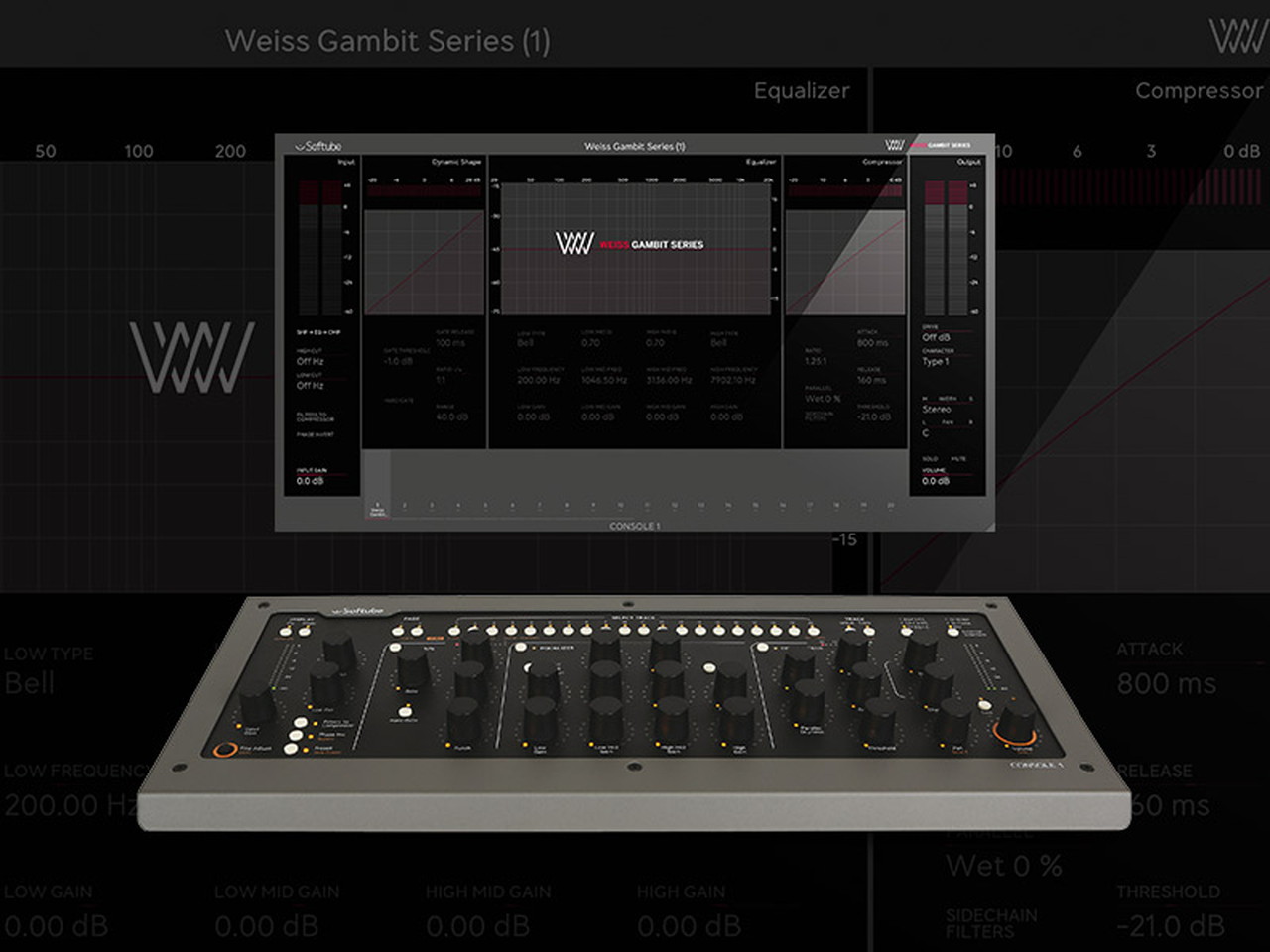 Weiss Gambit Series for Console 1は、Softubeのハイブリッド・ミキシング・エコシステムConsole 1専用のアドオンであり、 Weiss DS1-MK3とWeiss EQ1の中核をなすプロセッシング要素が1つのチャンネル・ストリップに統合されています。