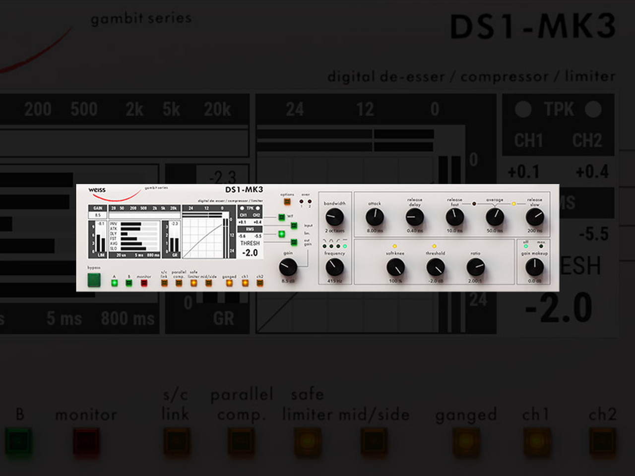 SoftubeとWeiss Engineering社との強力なパートナーシップによる伝説的な名品の数々に名を連ねることになるWeiss Gambit Seriesは、オリジナルのアルゴリズムを備えています。その一方で、スレッショルド未満へのコンプレッションなど、独自のハイエンドな機能も備えています。