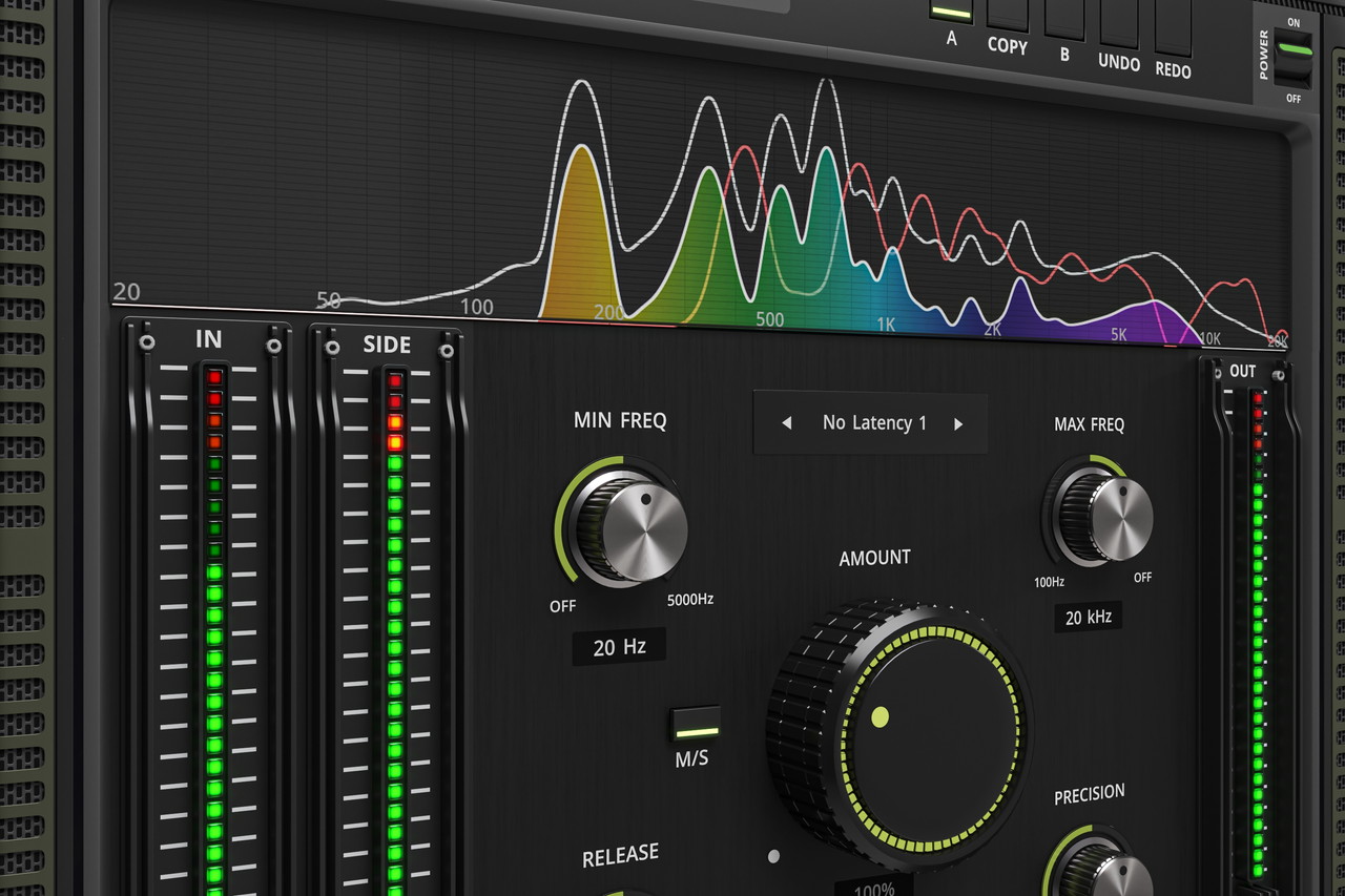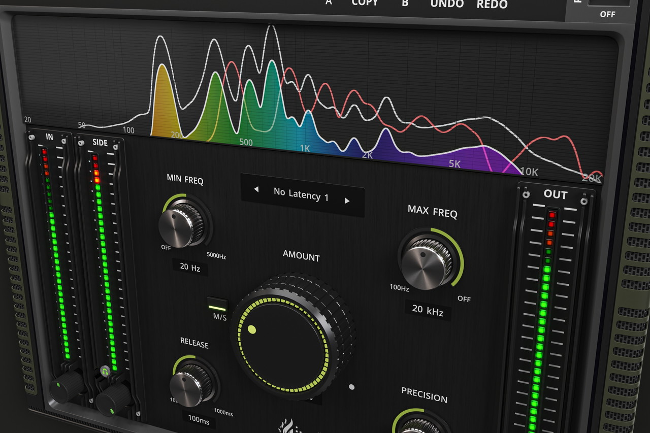 FireSpacer はリアルタイムで動作し、サイドチェーンを介して 1 つのチャンネルのオーディオ周波数コンテンツを分析、