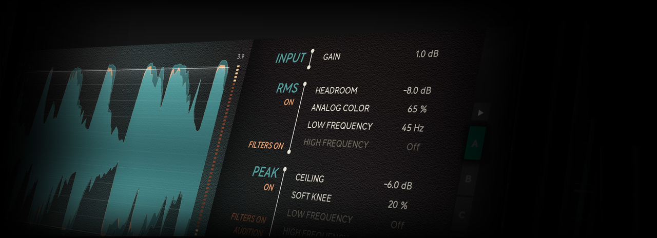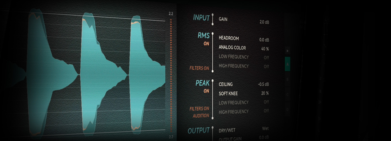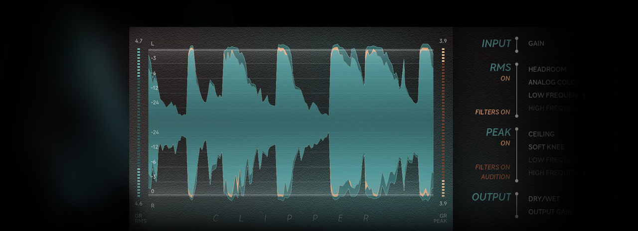 やりすぎると、不快な音になることがあります。これは、ピーク クリッピングが音楽的な機能ではなく分析的な機能であるためです。これに対処するために、Clipper のピーク制限ステージを、ピーク クリッピング ステージに入る前に素材を穏やかに形作るために使用できるRMS ステージと組み合わせました。