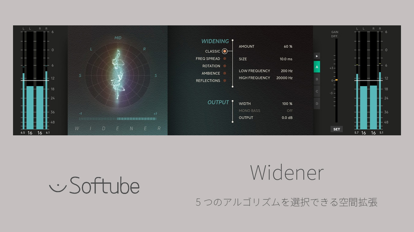 Widener は、モノラルとステレオの両方のソースに効果があります。