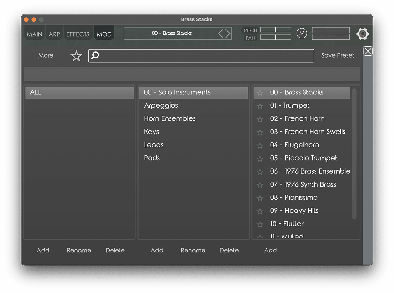 Brass Stacksは、12の独自にサンプリングされた管楽器のテクスチャを収録。組み合わせはカスタマイズ可能です。