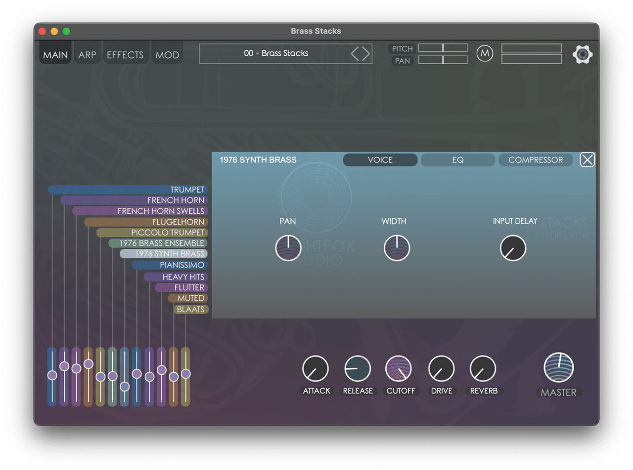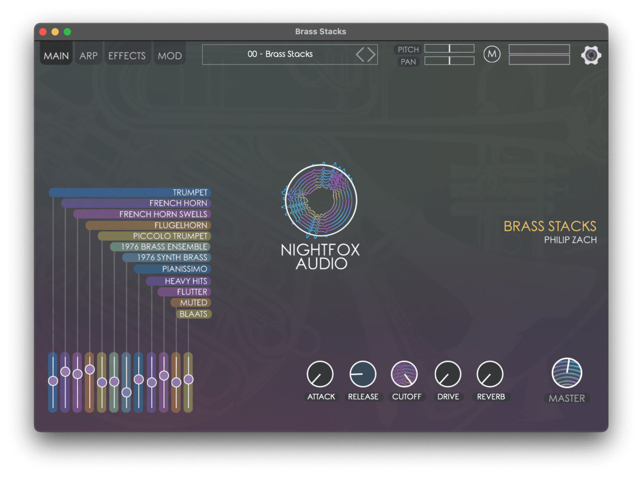 Nightfox Audio プラグインは、最大 12 個のインストゥルメントをスタックして数秒以内にまったく新しいハイブリッド サウンドを作成できるように設計されており、