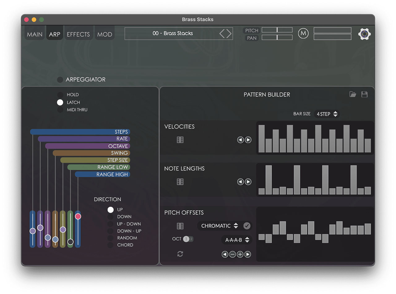 - ホールド、ラッチ、ミディスルーモードを備えた完全にカスタマイズ可能なアルペジエーター