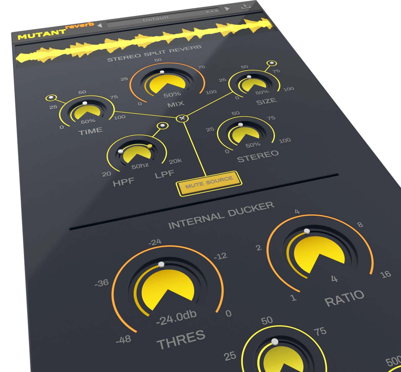 Mutant Reverb は、複雑なルーティングやサイド チェーンを使用せずに、元の信号の明瞭性を維持しながら、雰囲気と空間の感覚を完璧に制御します。