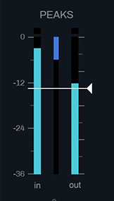 シグナルチェーンの最初のステップであるPeaksコンプレッサーは、信号から振幅のスパイクを取り除き、より滑らかなサウンドにします。