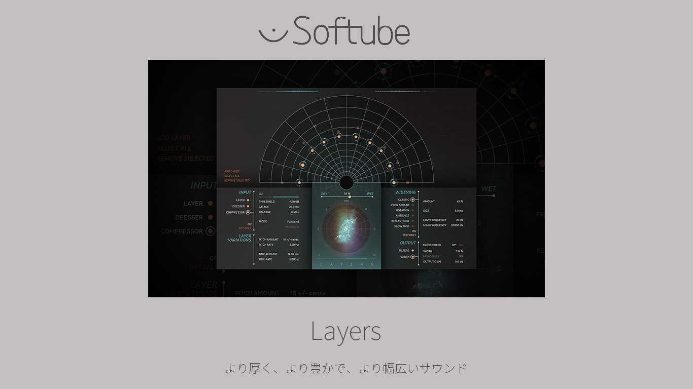 直感的なダブリングの制御、オーガニック モジュレーションの素早いマクロ制御、ワールドクラスのワイドニング アルゴリズム、フルバンドおよびマルチバンド コンプレッション、ディエッシング、オクターブ効果... レイヤーはこれらすべてを提供し、よくある面倒なことやハングアップは一切ありません。