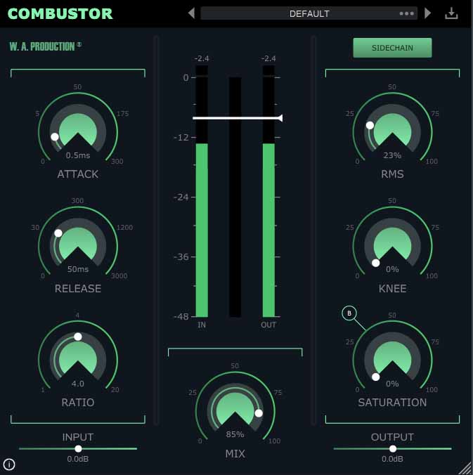COMBUSTOR には、期待されるすべてのコンプレッサーコントロールが搭載されていますが、5 つの異なるサチュレーションモデルとサウンドシェーピングの豊富なオプションなど、サプライズもいくつかあります。このプラグインは、ベースラインに倍音を追加したり、パーカッションにスナップしたり、ボーカルを歌わせたりすることができます。