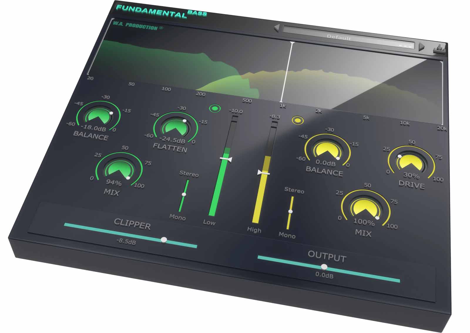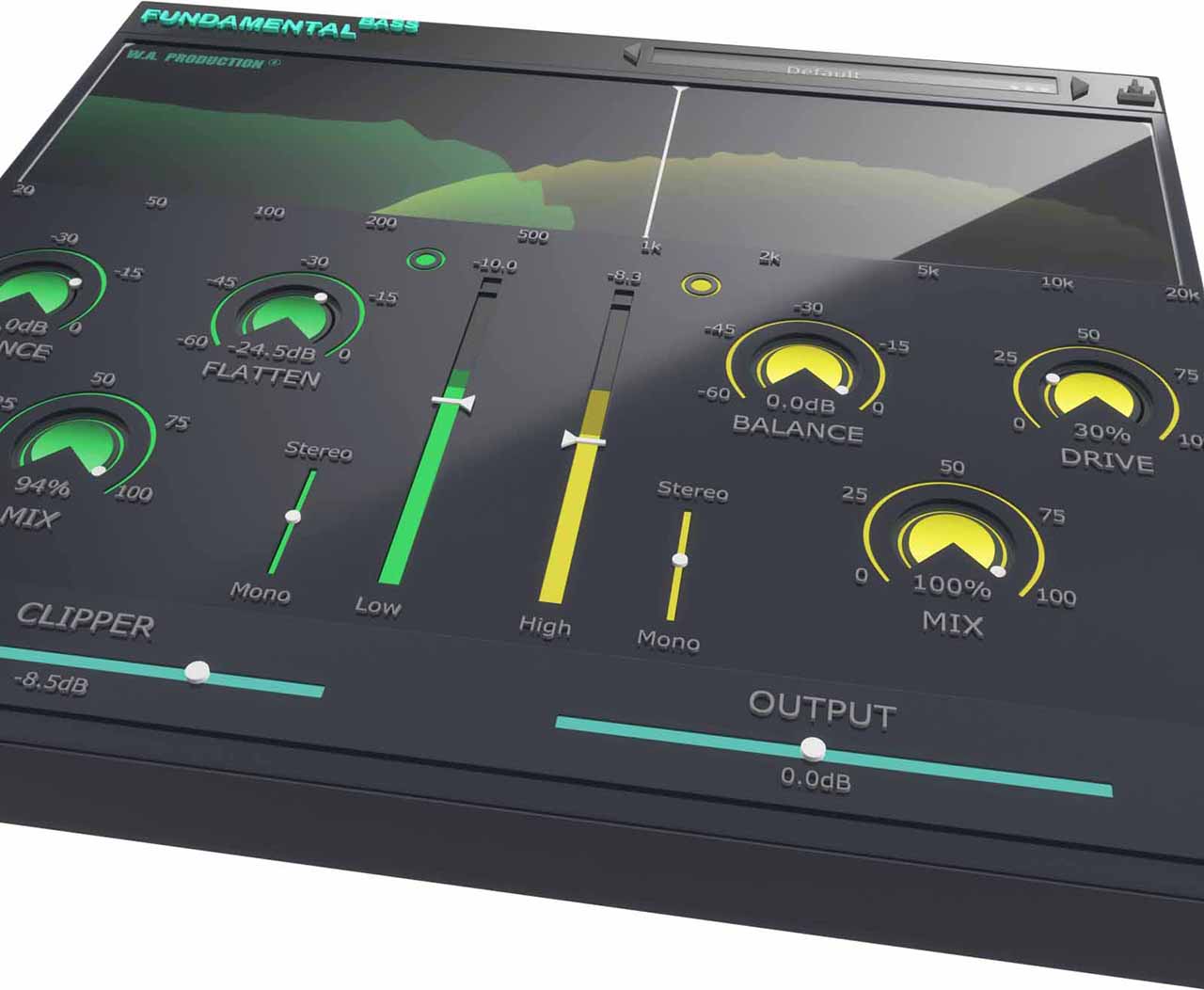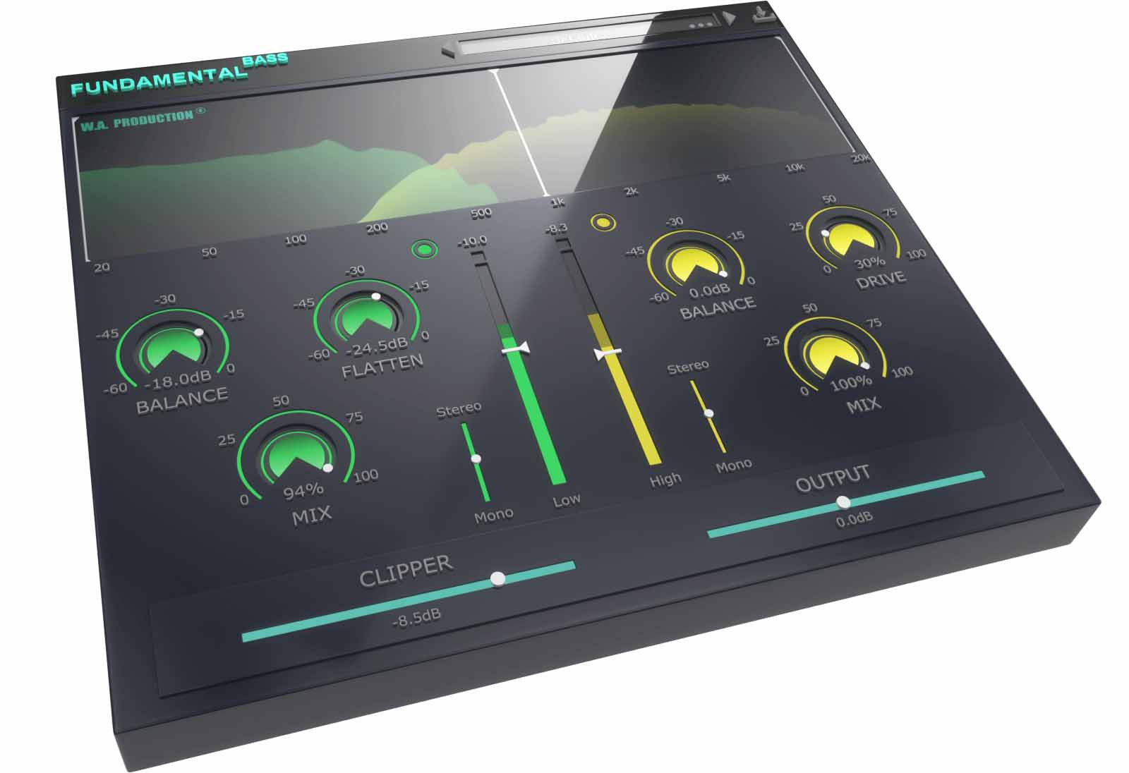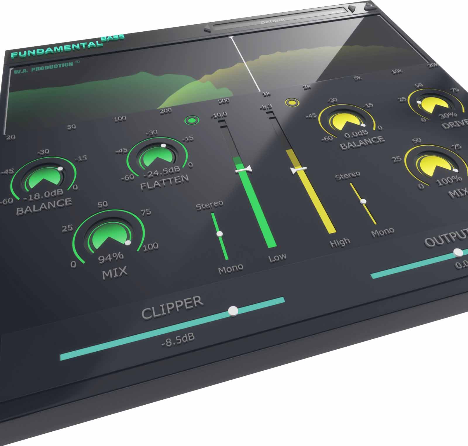 Fundamental Bass では、低音モジュールと高音モジュールに独立したステレオ イメージング スライダーを使用して、このテクニックを簡単に実行できます。