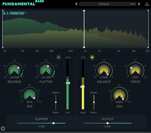 高音モジュールと低音モジュールの両方に独立したゲイン コントロールがあり、さらに並列処理用のミックス比ダイヤルも備えているため、Fundamental Bass を使用すると、微妙な変化や力強い表現力豊かな変化を実現できます。