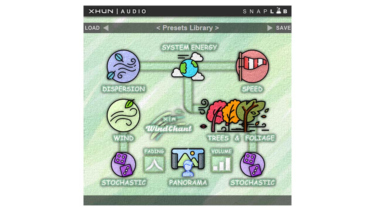 音楽、ライブ イベント、映画、テレビ、エンターテイメント制作のために生まれた WindChant は、複雑で強力な確率エンジンに基づいています。サンプルをまったく使用せず、サウンドと流体力学は実際にリアルタイムで生成されます。