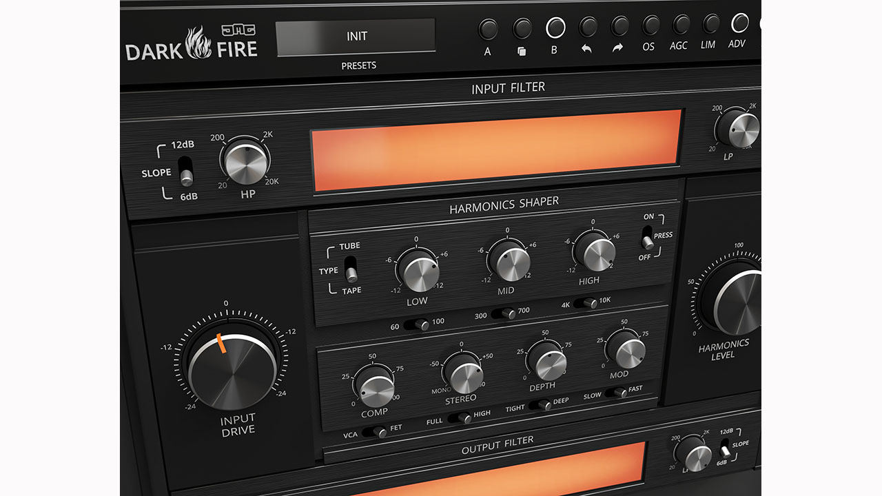 DarkFire は、アナログのようなプリアンプおよびサチュレーター プラグインで、信号を飽和させた後、追加された倍音を切り離し、個別に処理してから、元のオーディオ信号とブレンドできるという優れた機能を備えています。