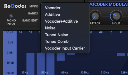 RoCoderは、一般的なボコーダーの機能に加えて、以下の革新的なモードを内蔵しています。