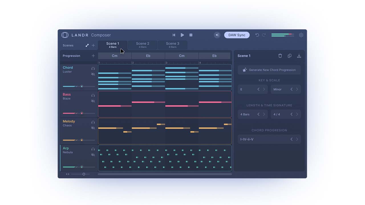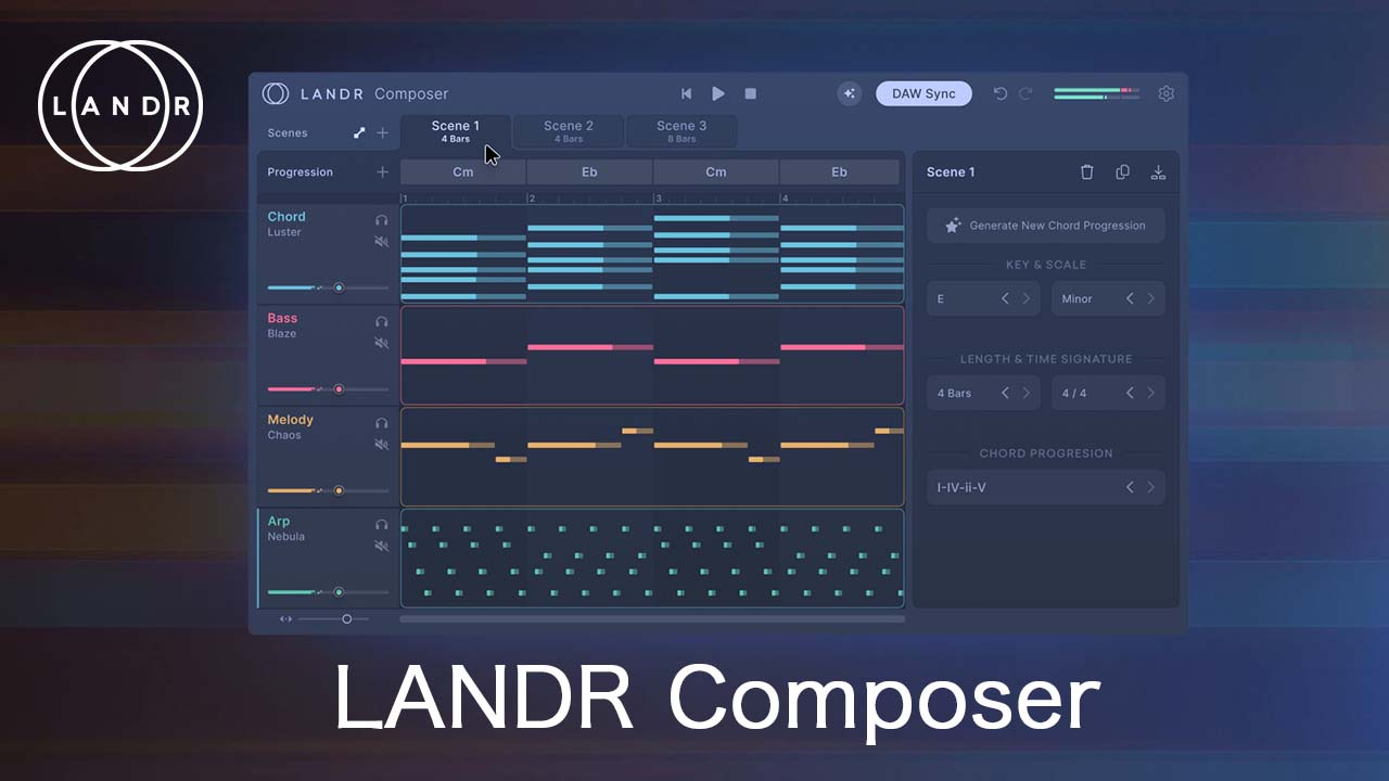 コード、ベースライン、メロディー、アルペジオのユニークで刺激的な MIDI シーケンスを自動的に作成します。