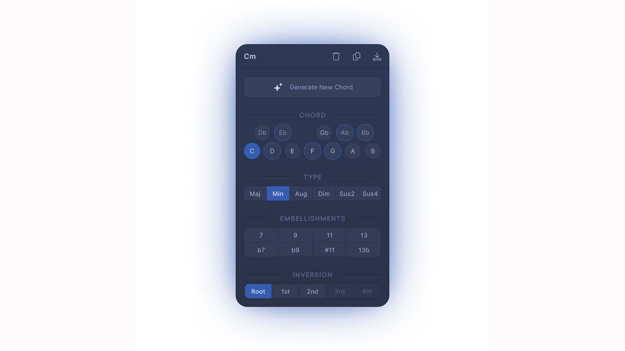 複雑なコード進行や個々のコードを簡単に生成します。音楽理論の知識は必要ありません。