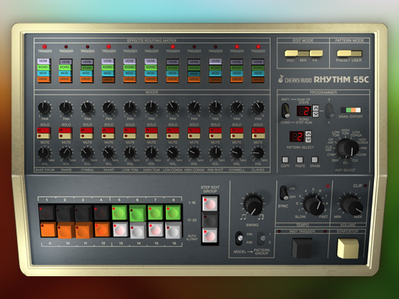 ポスト・パンク時代のあまり知られていない2つのドラム・マシンの機能を組み合わせた、最高のソフトウェア・エミュレーションです: KORGの 「Rhythm 55」 KR-55AとKR-55Bです。KR-55Cは、両機種のすべてのリズムを搭載し、合計240のファクトリー・パターン、イントロ、フィルを収録しています。