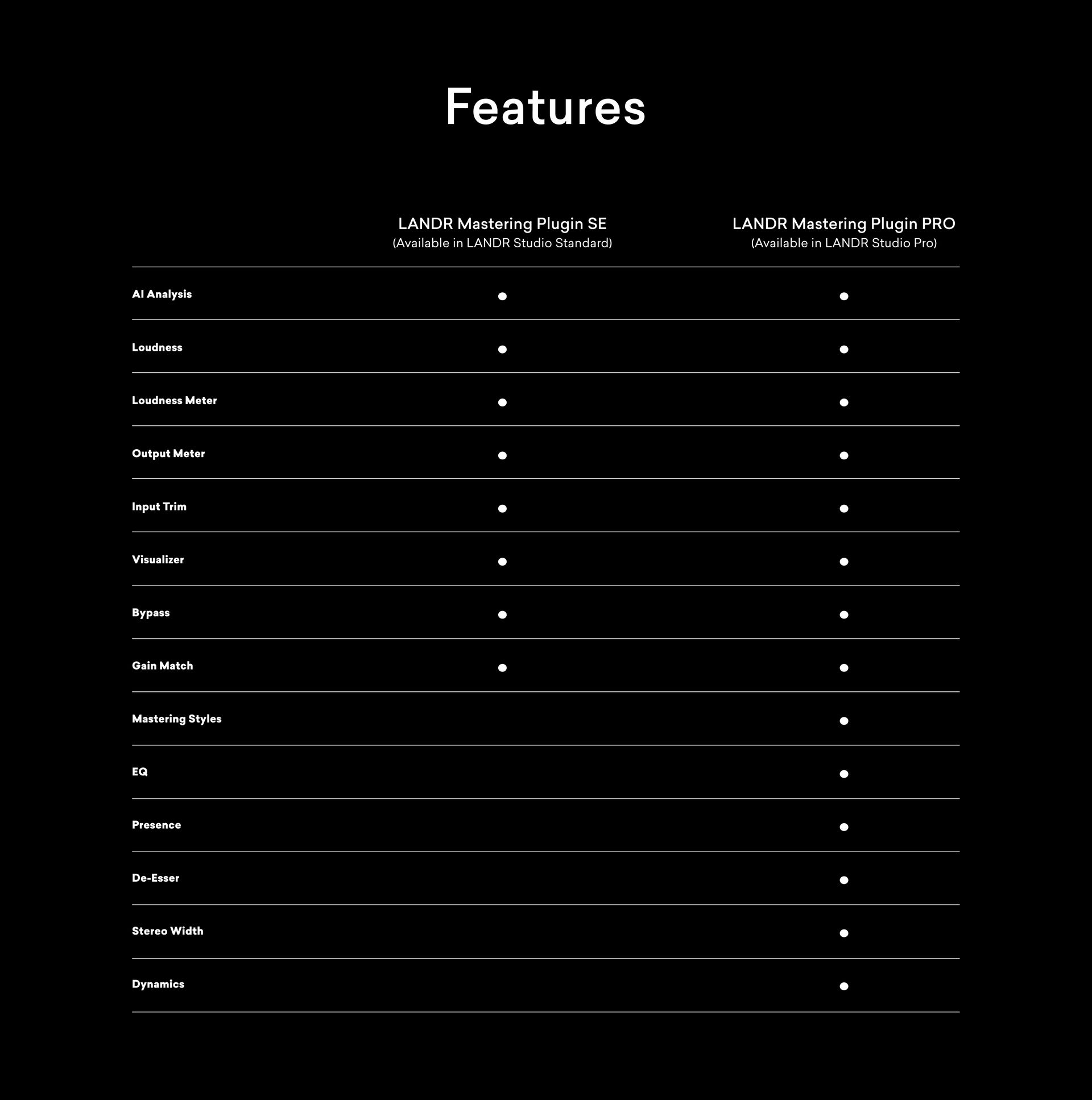 LANDR Mastering Plugin PRO(本販売ページ)とSEの違い