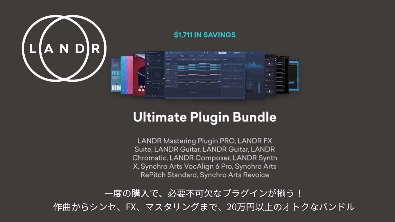 LANDR Ultimate Bundleは、マスタリング、サウンド・デザイン、ボーカル・プロセッシングのための高度なソリューションを提供します。