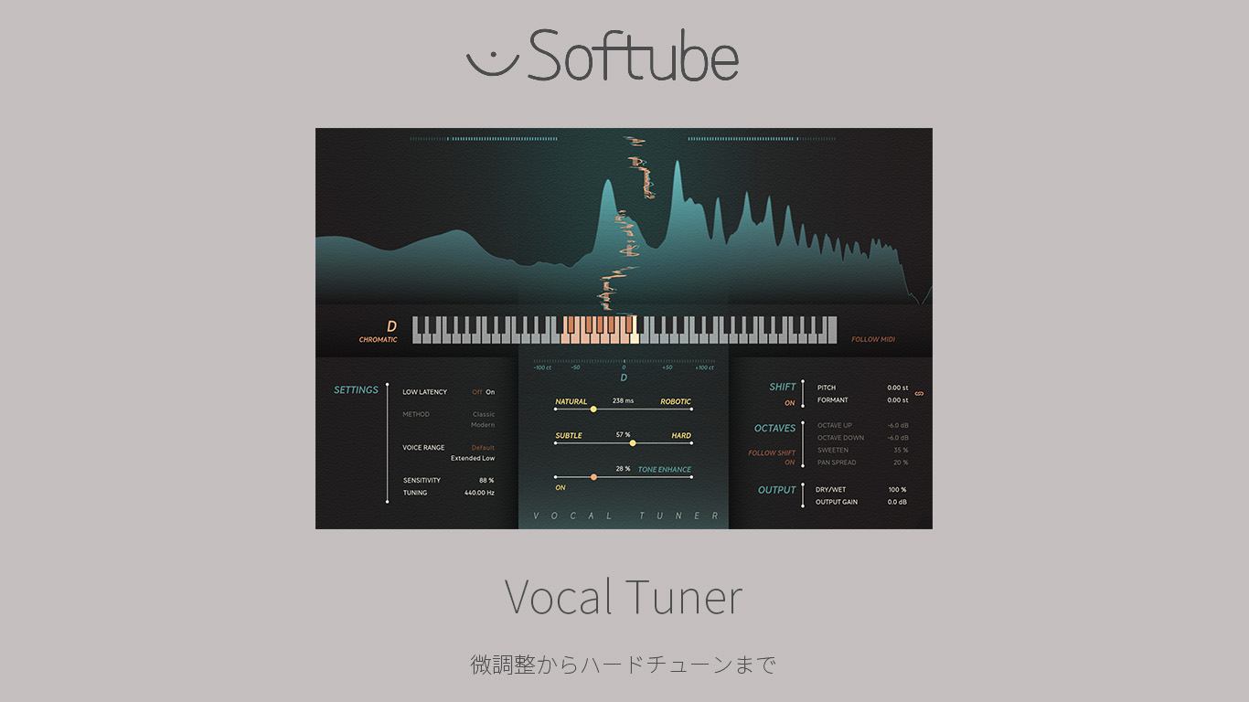 Vocal Tuner は、Softube の定番である高品質のサウンドと超高速のワークフローを提供します。