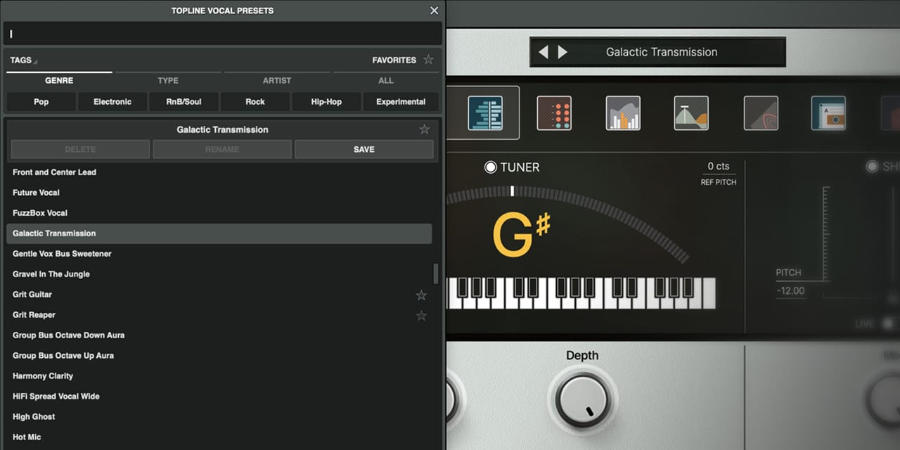 Topline Vocal Suiteは、アイコニックなピッチパーフェクトなチューニングを実現します。
