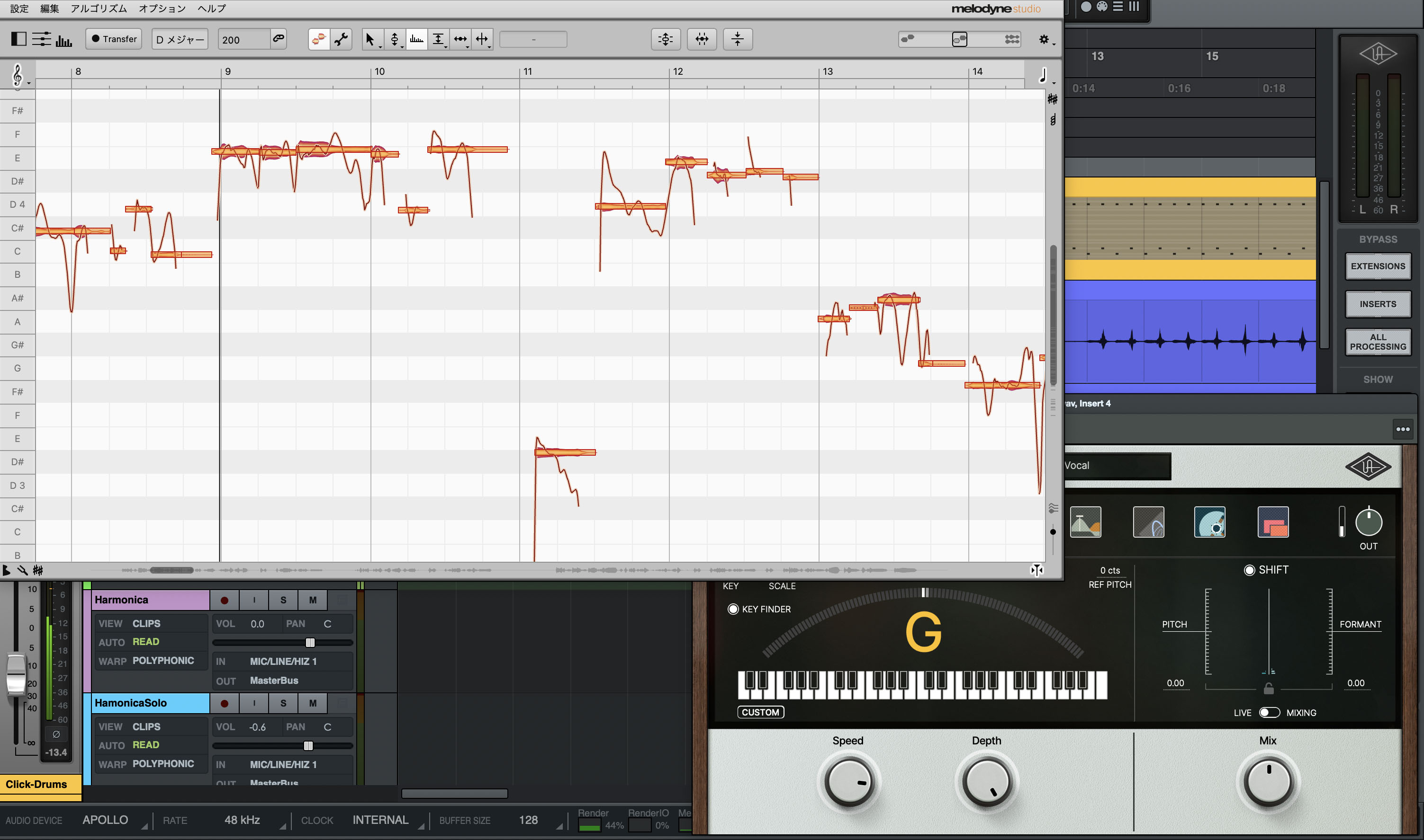 ただ単純にピッチを補正するだけではなく、細かなディエッシング、ノートベースでのフェードでタイミングの調整、フォルマント調整、マルチトラックでのノート調整など細かな調整を実現。