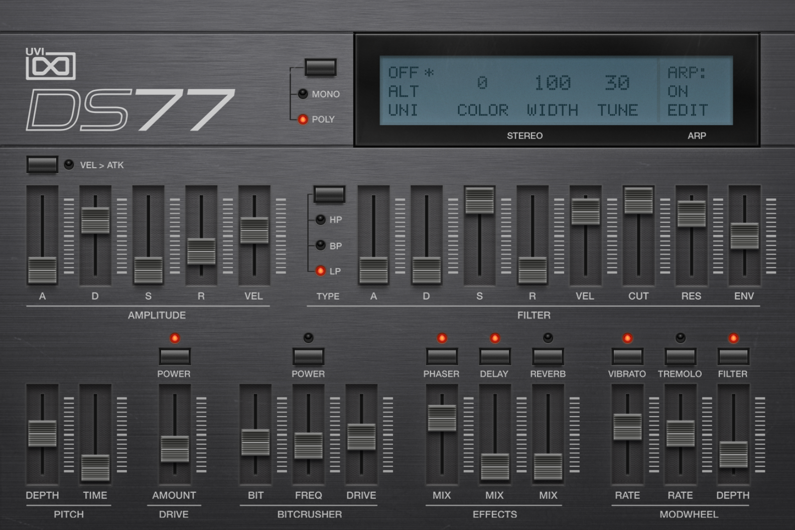 すべてのパッチは、プロマスタリングに送る前に、深くマルチサンプリングされ、完璧に編集されました。これらのサウンドはDigital Synsationsの基盤となり、UVIエンジンと組み合わせることで、これらのクラシックシンセの真のハードウェアキャラクターを提供し、すべての特殊性とプログラミングによる副産物がありのままであることを実現します。そして、高度なアルペジエーターを備えた非常に使いやすく、迅速に編集できる環境で入手できます。また、ハードウェアや当時の技術ではなし得ることのできなかった装備も用意され、壮大な進行や、キータッチで自動発生する響きの作成に役立ちます。Digital