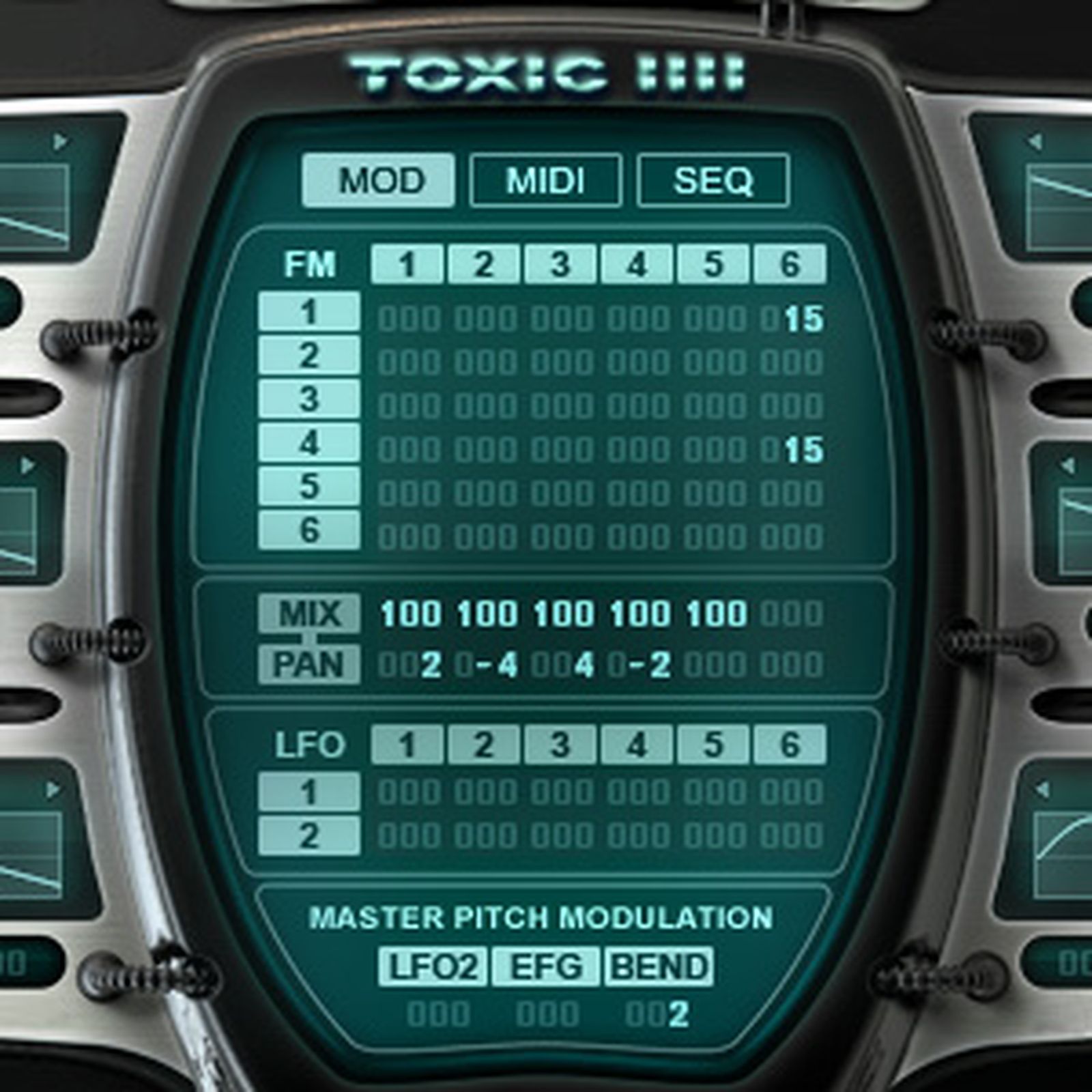 ・Toxic Biohazard のパラメータを変調するための MIDI コントローラルーティングである MIDI モジュレーション・マトリックスは最大 10 ユーザー設定可能