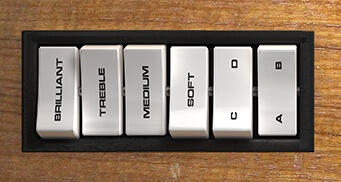 (4バンド EQ と名付けられる)四つのスイッチ“ブリリアント”、“トレブル”、“ミディアム”、“ソフト”は、それぞれ実機から忠実にモデリングされたものです。