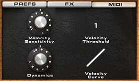 他の AcousticSamples 音源と同様に、このインストゥルメントもそのMIDIレスポンスを完全コントロールできます。