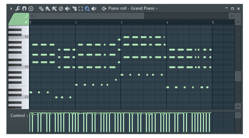 • ピアノロール - 空のパターン クリップを ダブルクリックすると、選択したチャンネルが開きます。