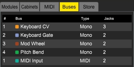 新しいバスは、複雑なパッチを作成し、煩雑なケーブルをなくすための独創的な方法を採用しました。入力端子と出力端子の両方をバスに割り当てることが可能です。バス上のすべての出力信号をミックスし、それを、すべての入力端子の入力ソースとして使用できます。これは、ARP 2500 や EMS VCS 3 などに備わる、オルタナティブ・パッチ・オプションを模倣したものです。