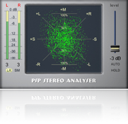 PSP StereoAnalyserは、ステレオシグナルの様々なパラメーターを観察するために使用します。主な特徴は中央に置かれたインプットしたオーディオシグナルの高精度な画像を表示するステレオオシロスコープです。